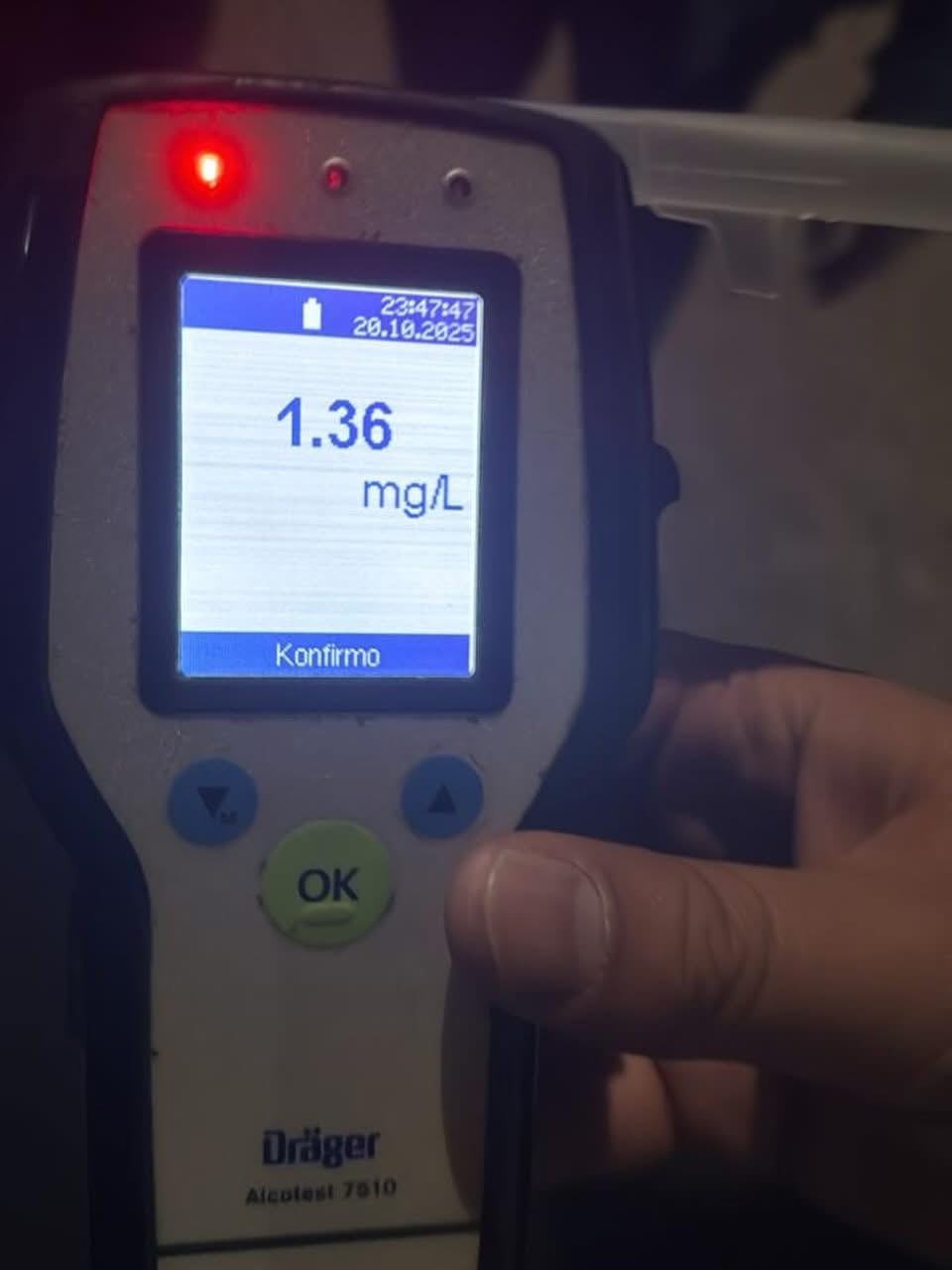 Pas verifikimit me testin matës të alkoolit ka rezultuar pozitiv në masën 1.36 mg/l dhe 1.33 mg/l.